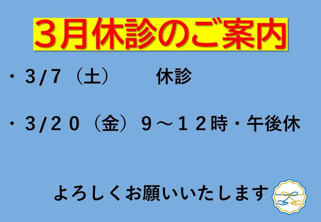 3月休診のご案内 タンジール病 みなさんこんにちは。内藤です。 ・3/7(土曜)午前、午後休診 ・3/20(金曜)9~12時、午後休診 となります。よろしくお願いします。 ☆★☆★☆★☆★☆★☆★☆★☆★☆★☆★☆★☆★☆★☆★☆★☆★☆★☆★☆★☆★☆★☆★☆★☆★ お身体のことでお困りの方、疲れている方は内藤接骨院までお気軽にお越しください!しっかりサポートさせて頂きます! 内藤接骨院 内藤