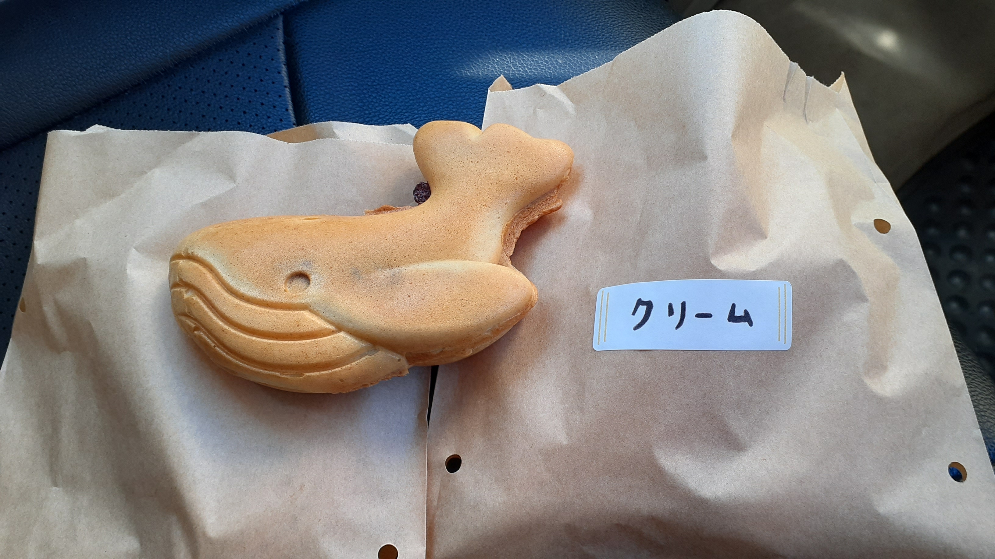くじら型のたい焼き!あんことクリームがあり、どっちもおいしかったです!