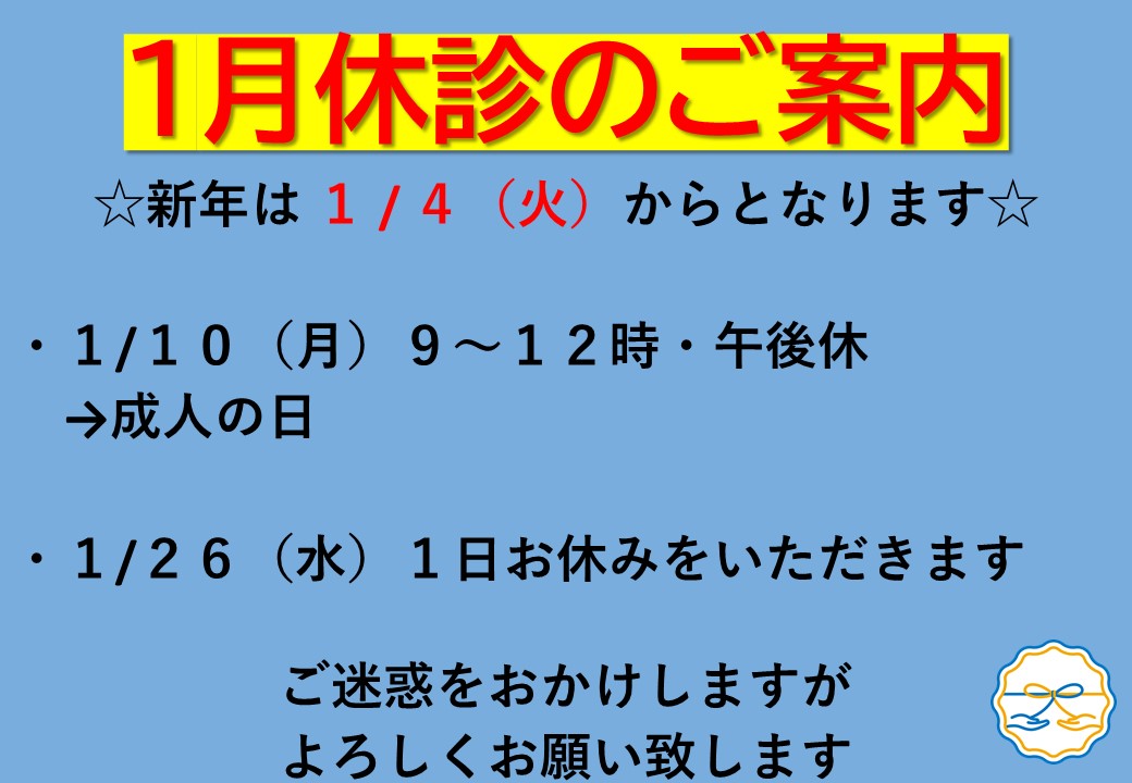 ・1/26(水曜)午前、午後ともに休診とさせていただきます。